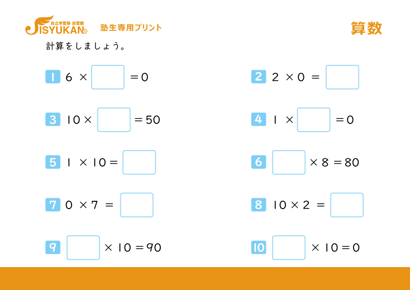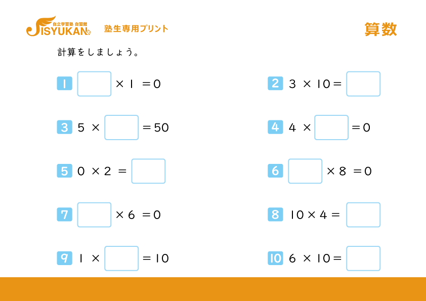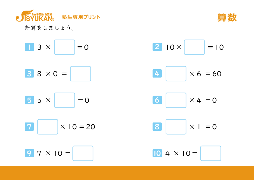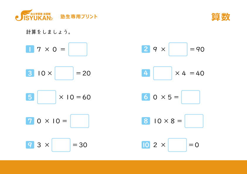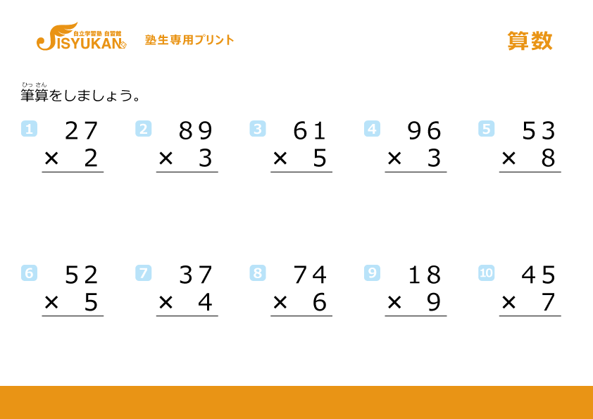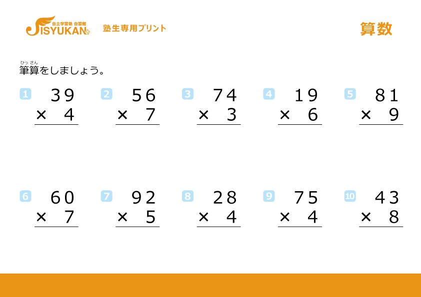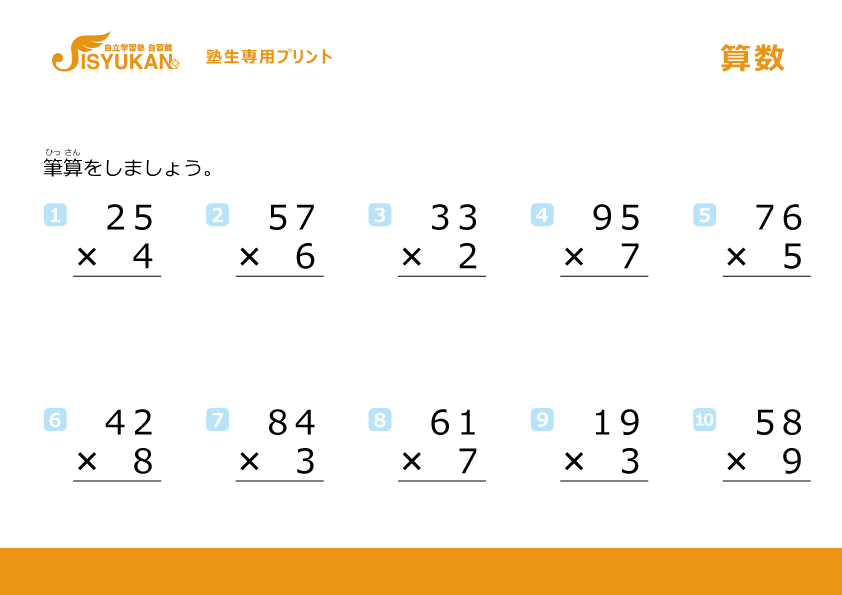 小学3年生 1桁で掛けるかけ算の筆算の練習問題1