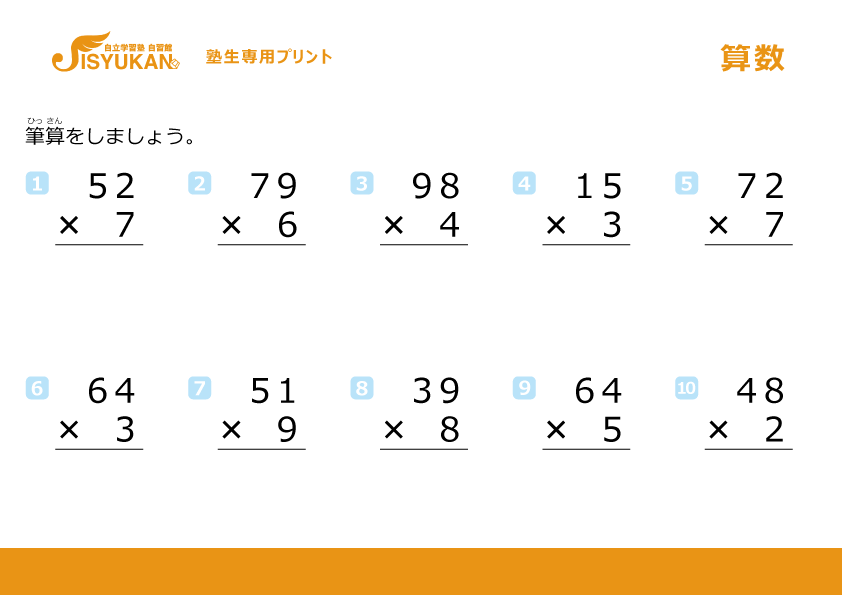 小学3年生 1桁で掛けるかけ算の筆算の練習問題2