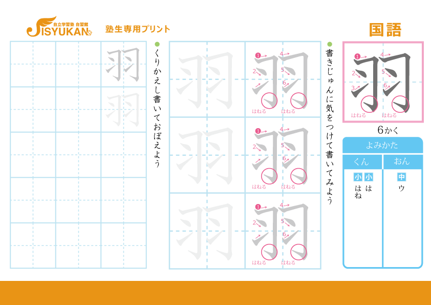 小学2年生 漢字練習「羽」