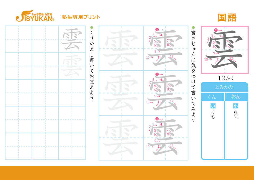 小学2年生 漢字練習「雲」