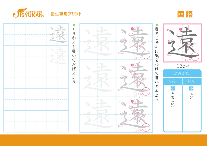 小学2年生 漢字練習「遠」
